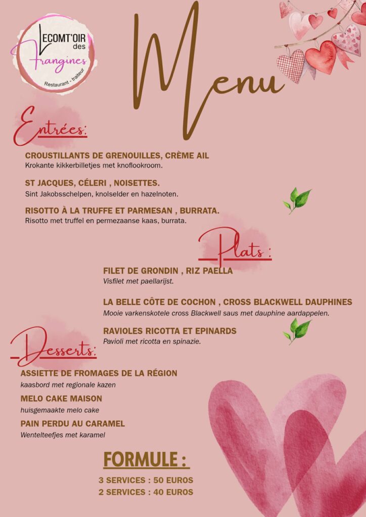 Comment profiter de ce délicieux menu 2 ou 3 services, directement dans votre hébergement ? / Hoe genieten van een heerlijk 2- of 3-gangenmenu, rechtstreeks in uw accommodatie ?