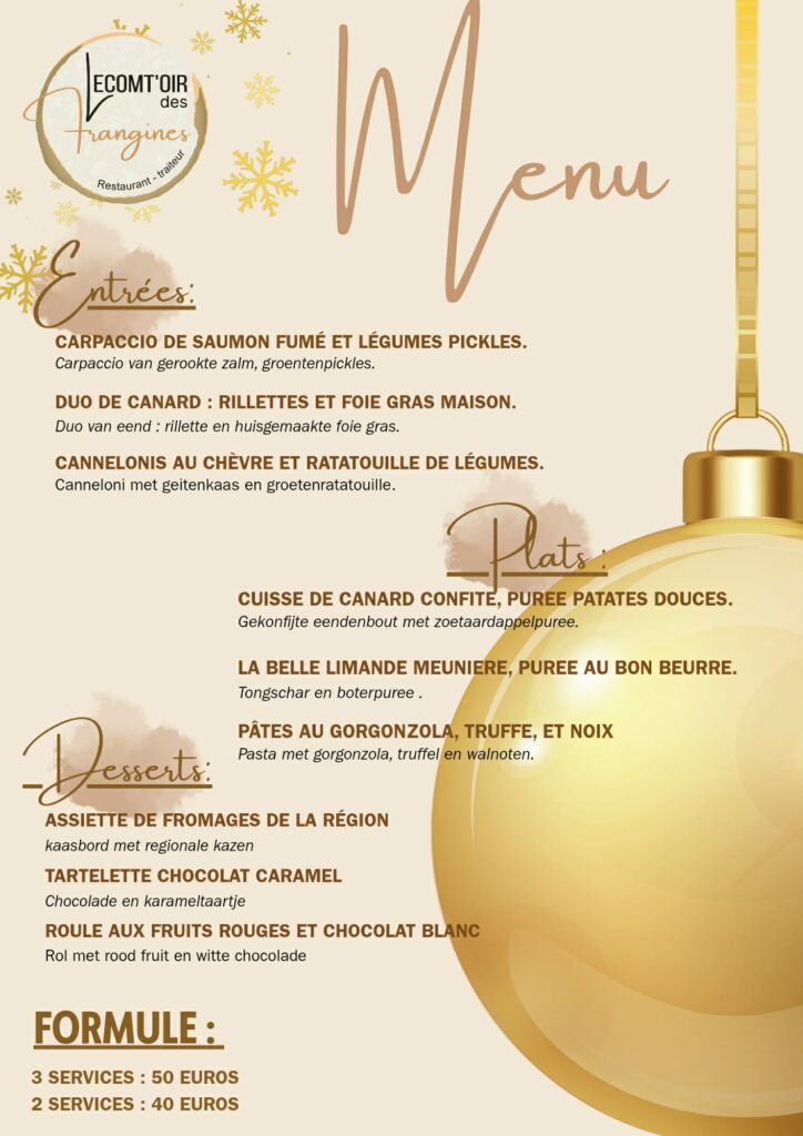 ! Sluiting : Geen menu mogelijk tussen 02 en 11 januari 2026 !
